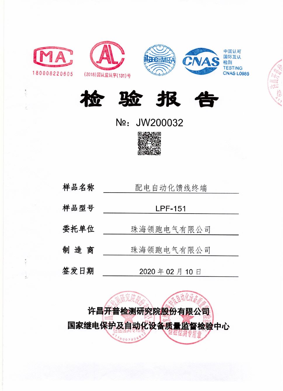 LPF-151馈线终端型式试验报告