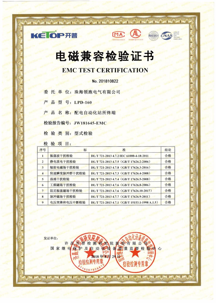 LPD-160站所终端电磁兼容证书